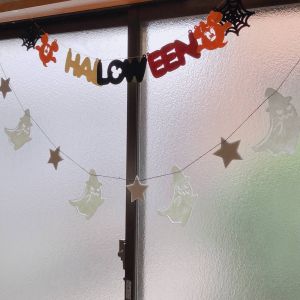 ハロウィンの飾り付けを