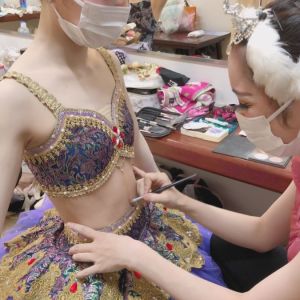 本番の舞台の上と、撮影の時だけマスクをはずしています😷